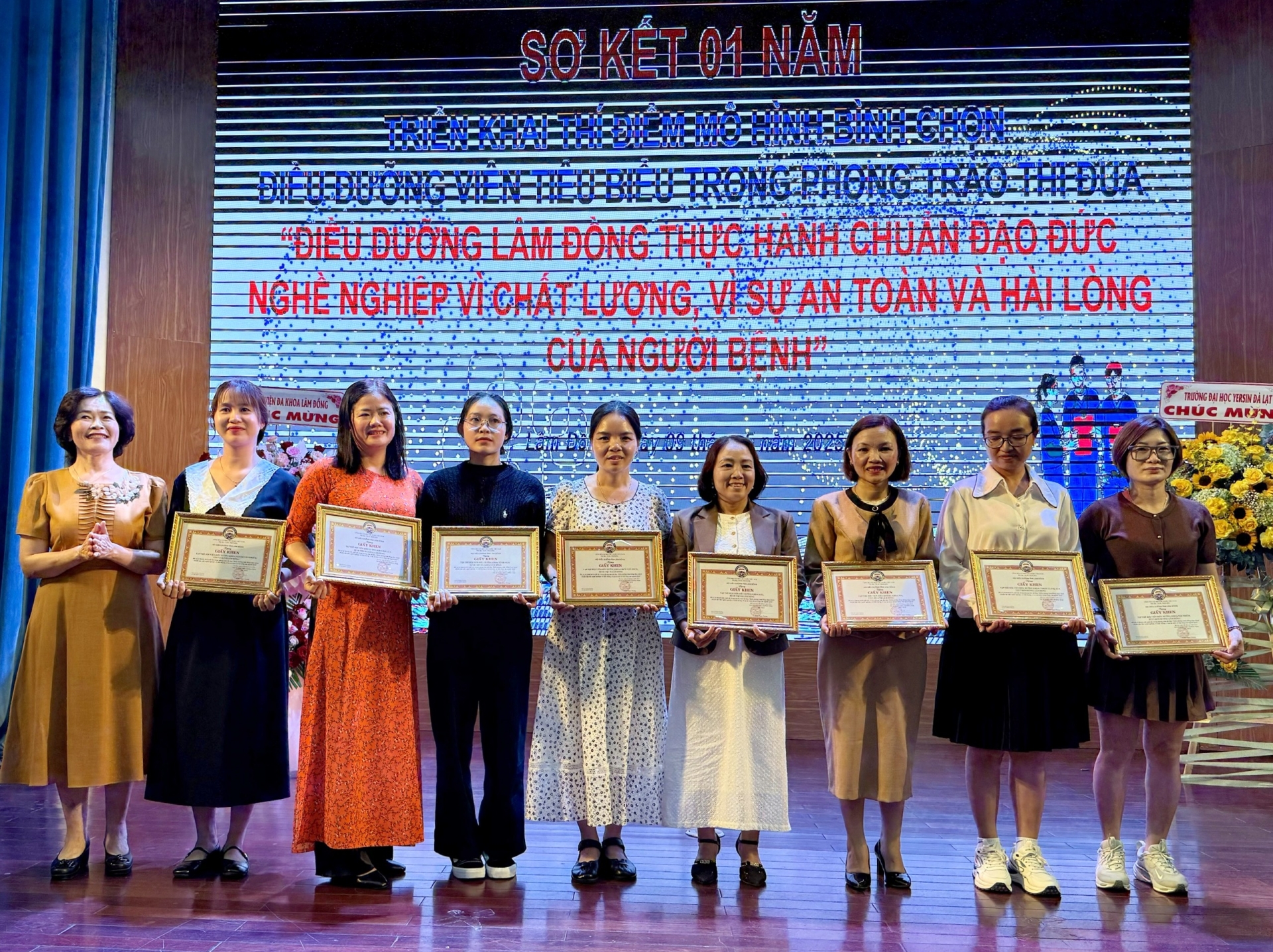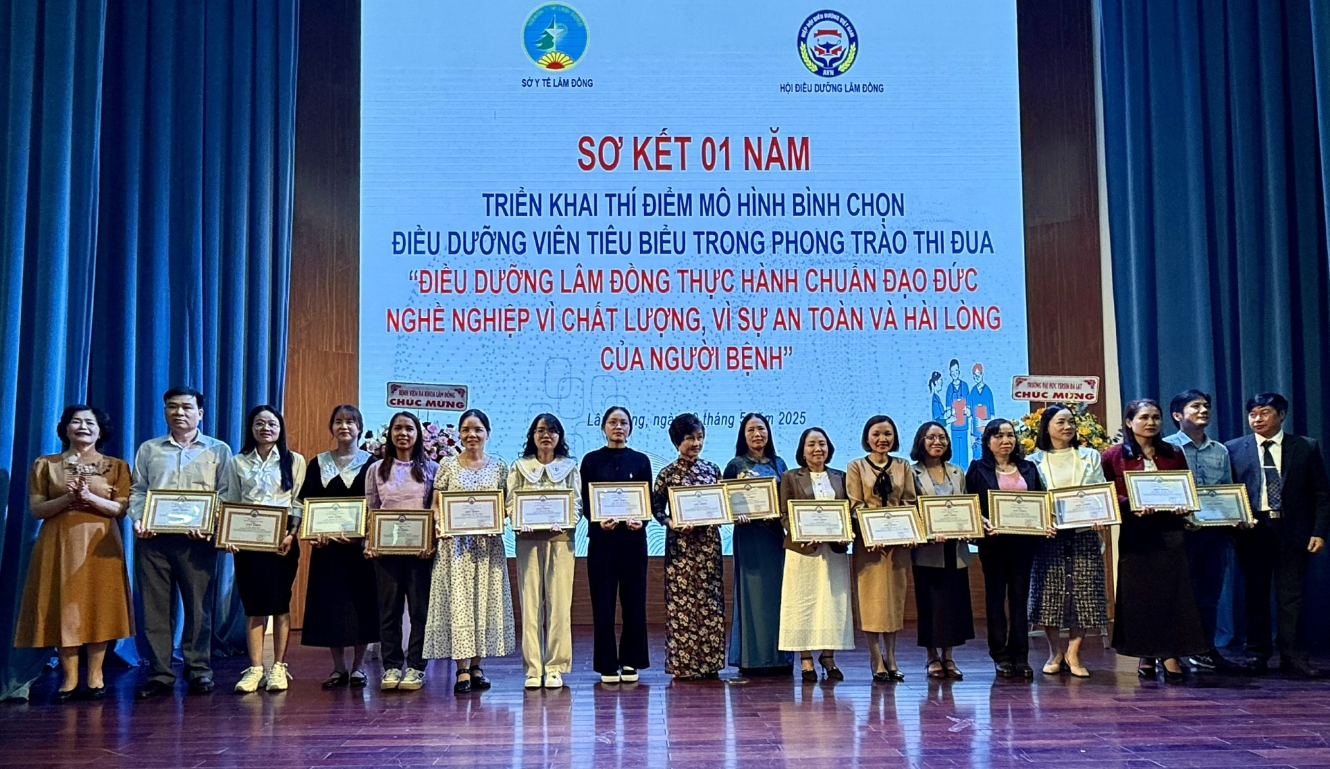 Từ kết quả bước đầu, Hội Điều dưỡng tỉnh Lâm Đồng đã tặng giấy khen cho 12 tập thể và 17 cá nhân đã có thành tích xuất sắc trong Phong trào thi đua Điều dưỡng Lâm Đồng thực hành chuẩn đạo đức nghề nghiệp, vì chất lượng, vì sự an toàn và hài lòng của người bệnh.