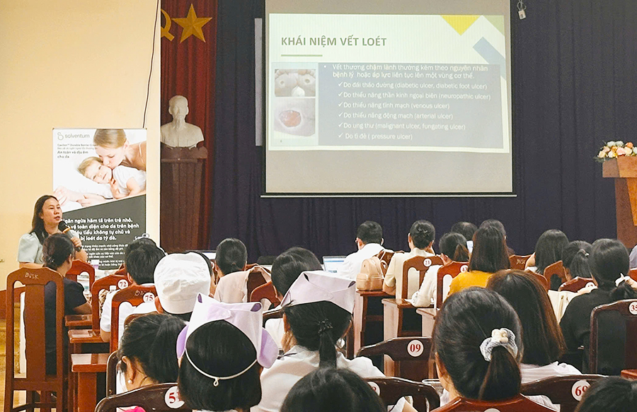 Nội dung tập huấn tập trung vào các chuyên đề thiết thực như: tổng quan công tác chăm sóc và quản lý vết thương hiện nay; nguyên tắc đánh giá, phân loại vết thương và tiến trình lành vết thương; vai trò của điều dưỡng trong chăm sóc, theo dõi, phòng ngừa biến chứng và bảo đảm an toàn người bệnh. Chương trình hướng đến chuẩn hóa quy trình thực hành điều dưỡng, đồng thời nâng cao kỹ năng giao tiếp – ứng xử và vai trò của điều dưỡng trong chăm sóc toàn diện.